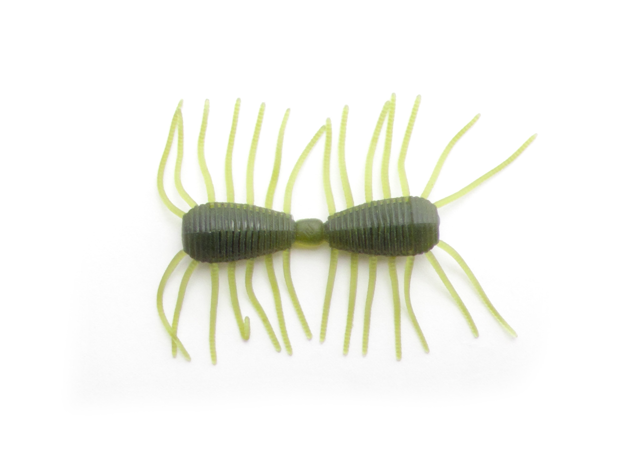 まず、エラストマー素材を採用することで、極めて高い浮力を得ています。ノーシンカーで水面に浮かべることができるだけでなく、ダウンショットリグではボトムを切った状態で中層定位させることが可能になりました。また、硬度の低いエラストマーを採用することで2WAY特有の「ワシャワシャ」感が引き立ち魚を魅了します。エラストマー素材が持つ素材自体の反発力にプラスして水中では浮力が作用するため、オリジナルと比べアクションに「ボヨンボヨン」としたメリハリが生まれよりクイックな喰わせのアクションが可能になっています。